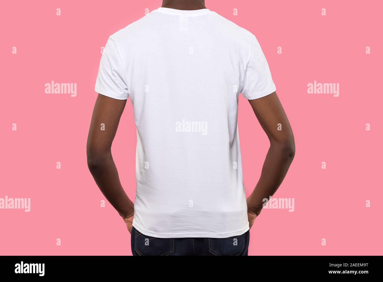 Hombre Afroamericano En Blanco Camiseta Blanca Atras Maqueta Fotografia De Stock Alamy